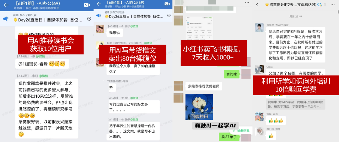 在秋叶,像这样通过学习 AI 技能为主业赋能、副业变现的学员,还有很多。