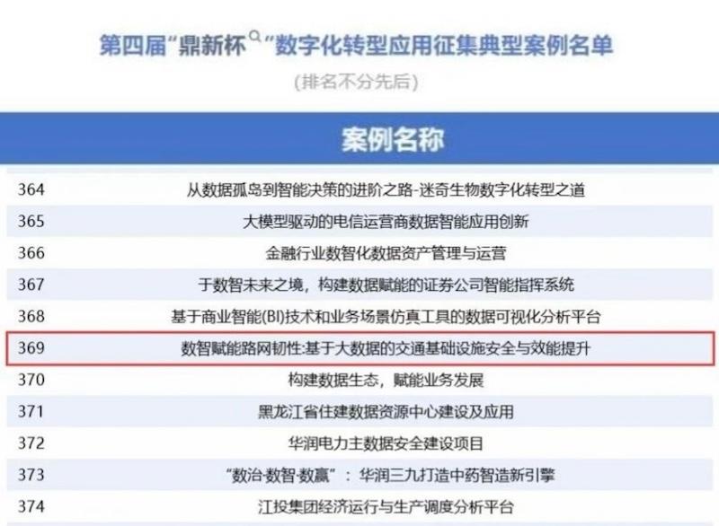 中国信息通信研究院近日正式公布2025年第四届“鼎新杯”数字化转型应用典型案例入选名单。中南交科公司所属的贵州道坦坦科技股份有限公司申报的“数智赋能路网韧性:基于大数据的交通基础设施安全与效能提升”项目成功入选股牛网,标志着公司在交通基础设施数字化转型领域技术研发实力、创新实践成果获得权威认可。