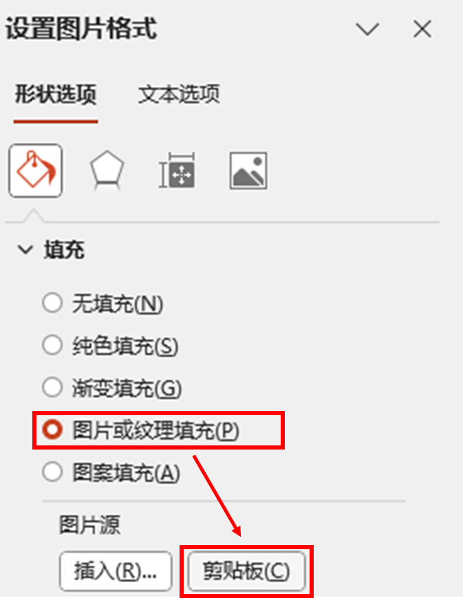然后给形状设置为图片纹理填充-【剪贴板】↓